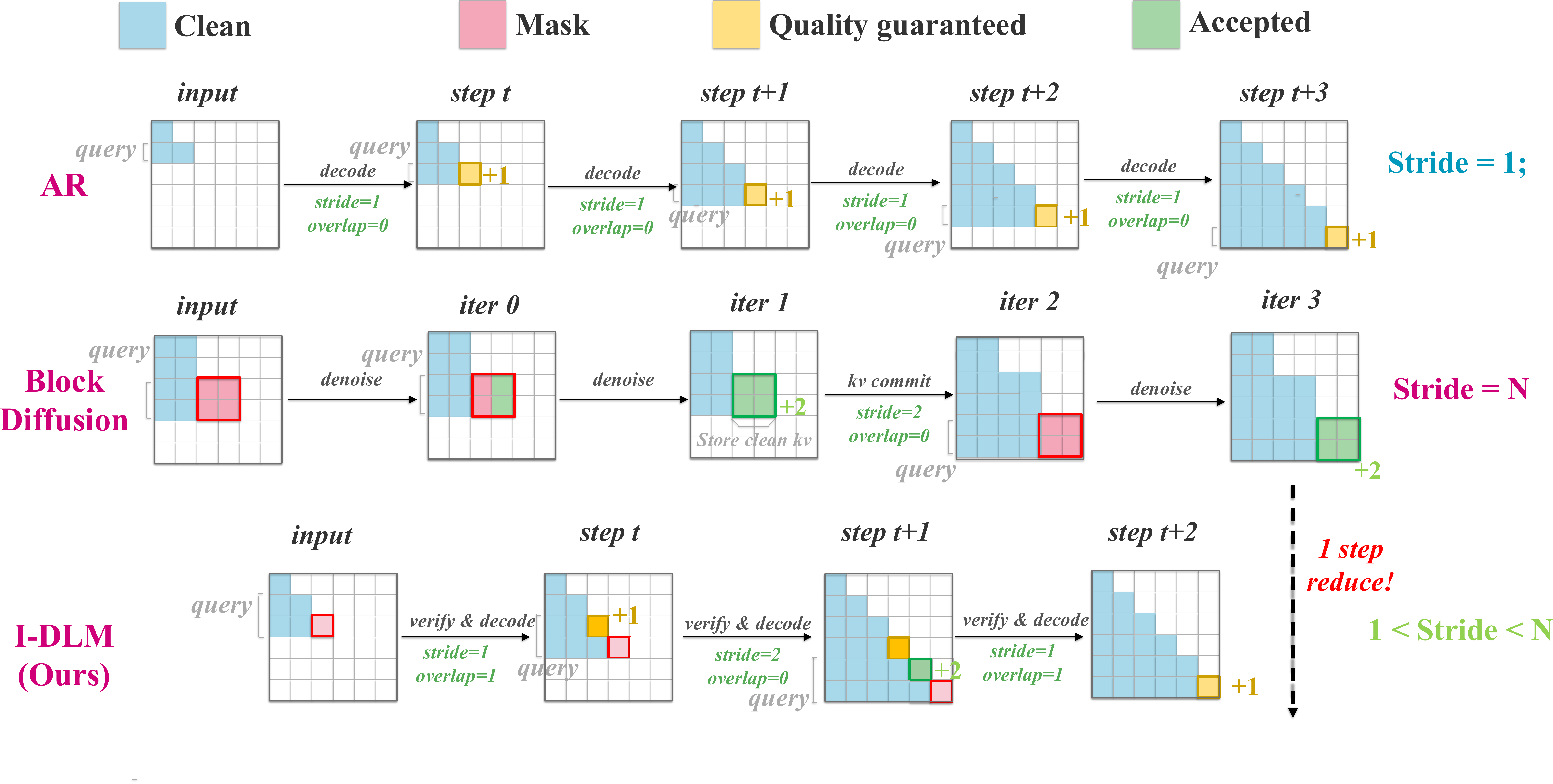 - Clean positions: Verify prior tokens (anchor distribution p)